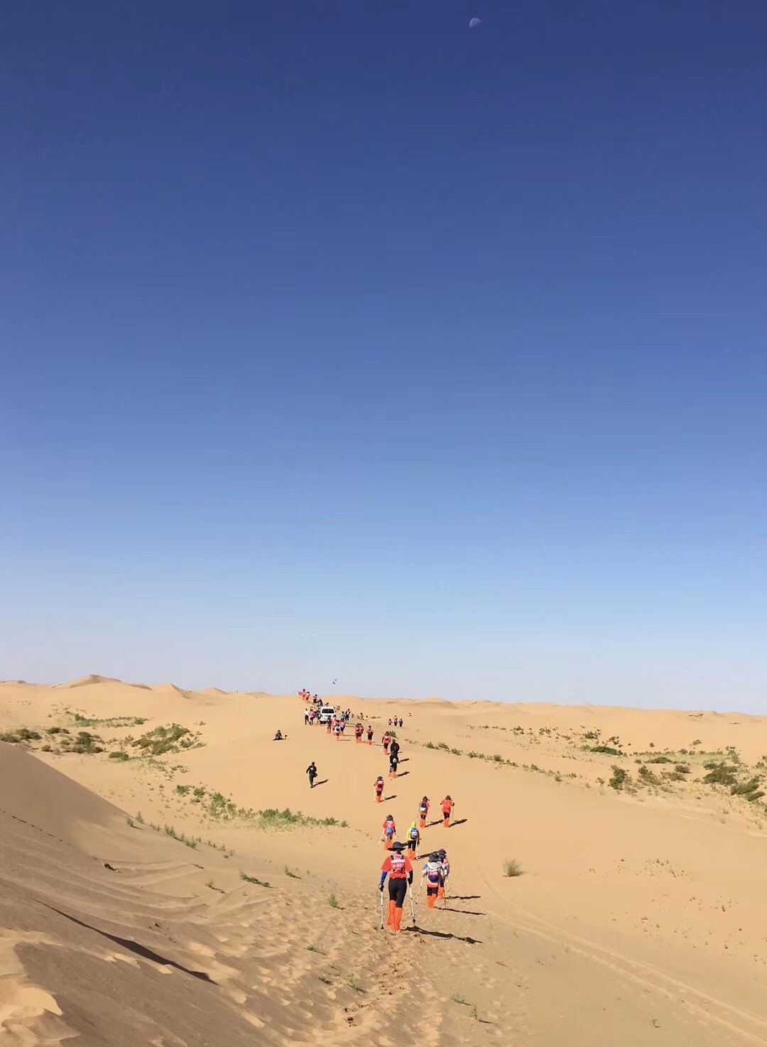 銀河基金的參賽隊員們在徒步穿越25公里沙漠中頂著暴曬和風(fēng)沙,團結(jié)協(xié)作,順利完賽。其中季戰(zhàn)戰(zhàn)取得了男子組第15名的好成績;李楊在出發(fā)5公里左右,膝蓋韌帶意外拉傷,仍然拖著傷腿完成了比賽。每一位隊員在比賽中,都秉承銀河基金的拼搏精神,不拋棄、不放棄,走完最后一公里。